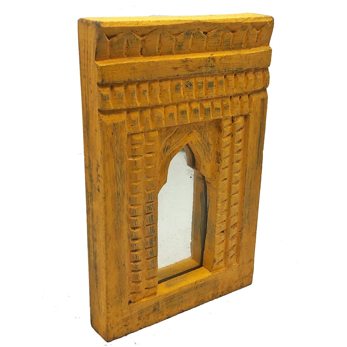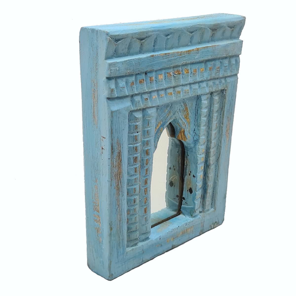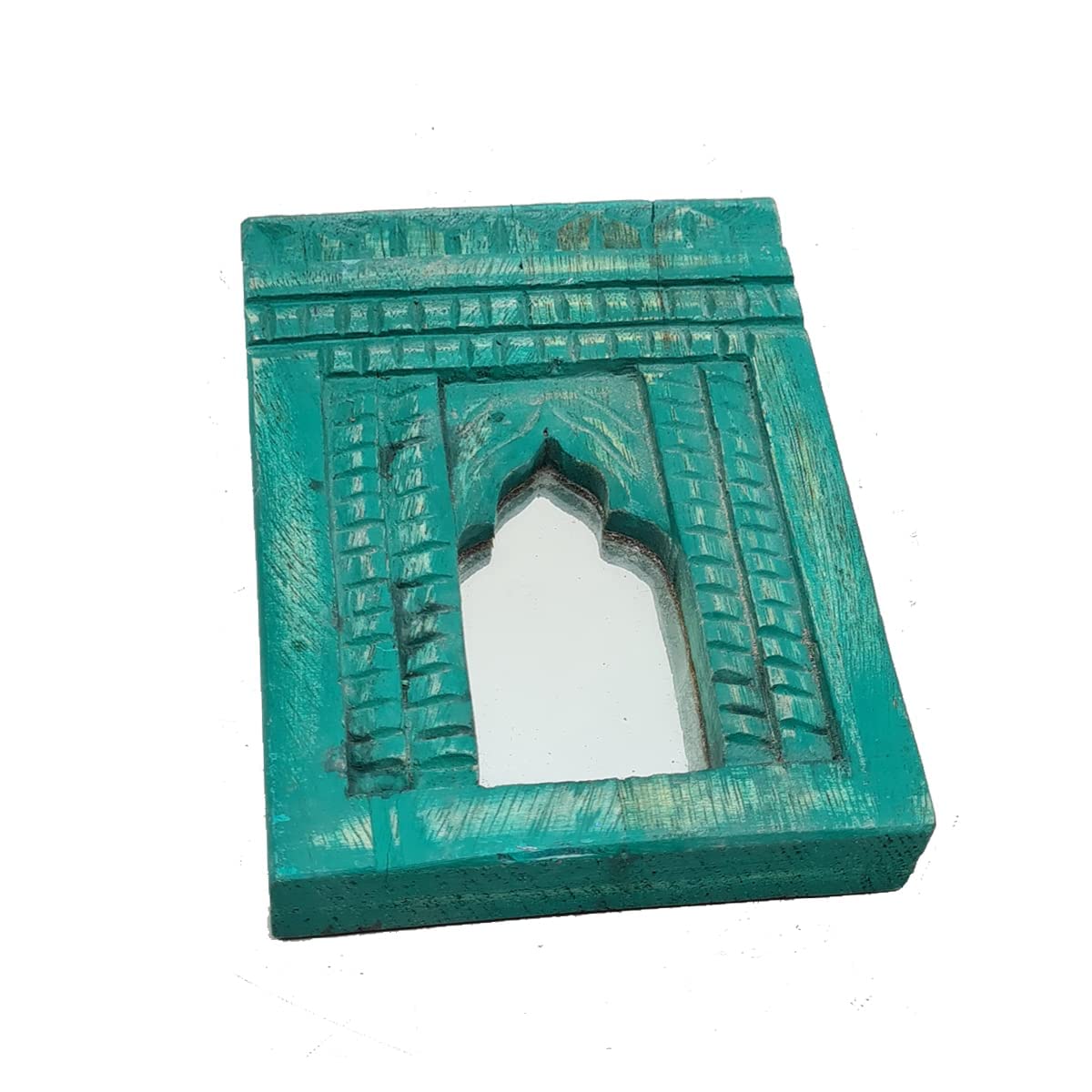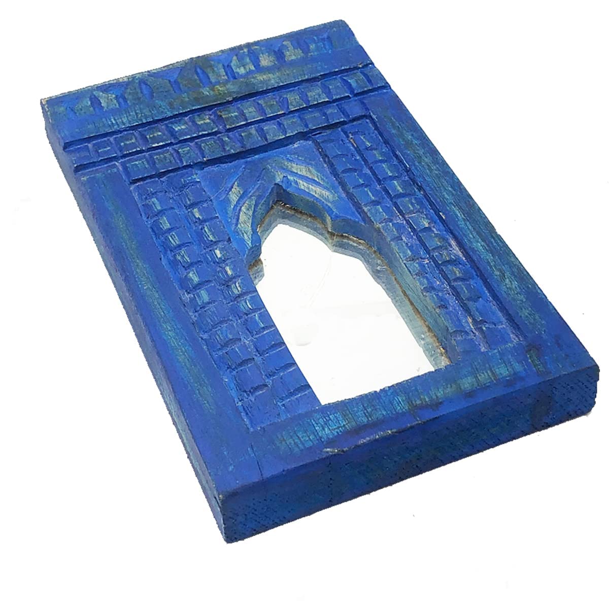 Expertly crafted with a unique distressed finish, these colourful temple mirrors add an antique artistry and rustic charm to any home. Made from high-quality solid wood in Jodhpur, Rajasthan, each mirror is 100% handcrafted with precise dimensions of 13cm in width, 2cm in depth, and 20cm in height.